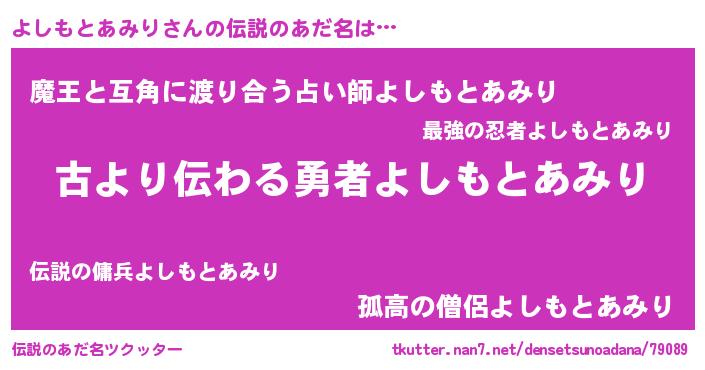 | ヒーロー風カッコイイあだ名 | 『仮面ヨシダー』『ネオヨシモトアミリ』 |