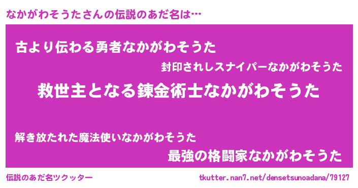 | 胡散臭い通販商品みたいなあだ名 | 『モンドセレクションを受賞した隕石のかけら…その名も「なかがわそうた」』 |