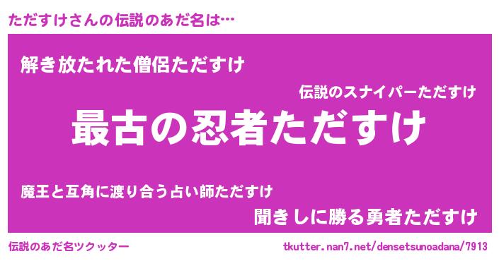 | ヒーロー風カッコイイあだ名 | 『ウルトラ戦士タダスケ』『仮面タダダー』 |