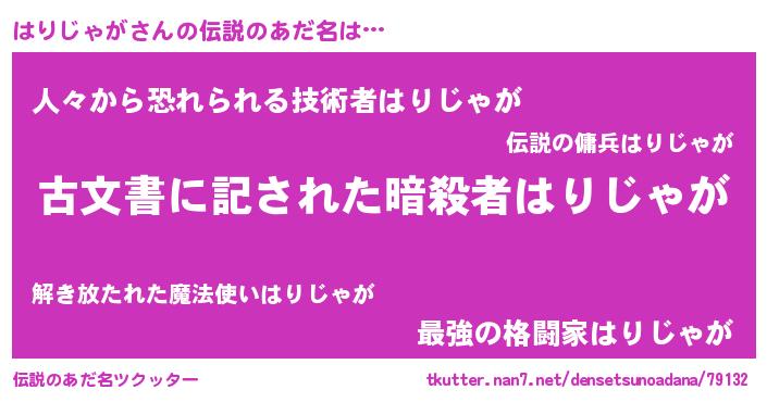 | 意味不明あだ名 | 『永久保存はりじゃが』『自称はりじゃが』 |