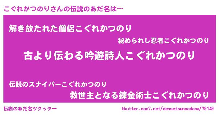 | 意味不明あだ名 | 『永久保存こぐれかつのり』 |