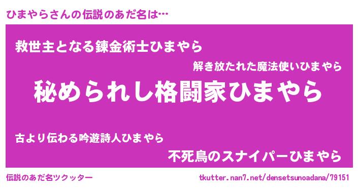 | 意味不明あだ名 | 『自称ひまやら』『ひまやらフォーエバー』 |