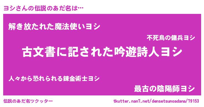 | 意味不明あだ名 | 『永久保存ヨシ』『ヨモギ科ヨシ属』 |
