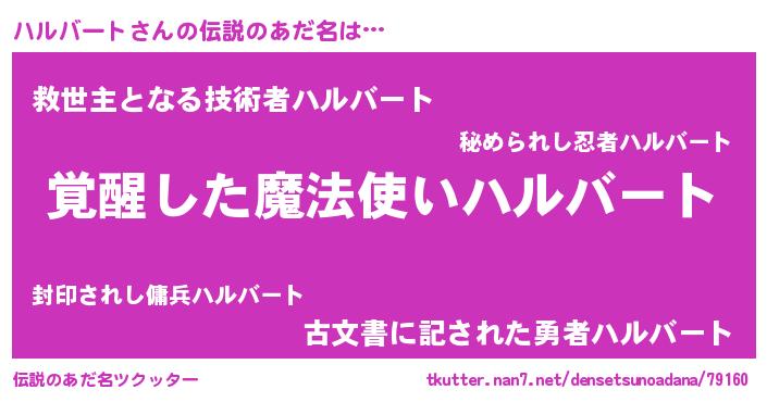 | ヒーロー風カッコイイあだ名 | 『炎刃騎士ハル』『友情の使者ハルバート』 |