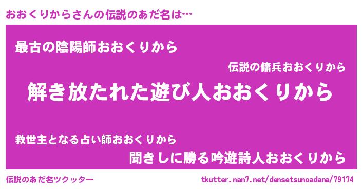 | 男性向けラノベタイトル風あだ名 | 『ダンジョンにおおくりからを求めるのは間違っているだろうか』 |