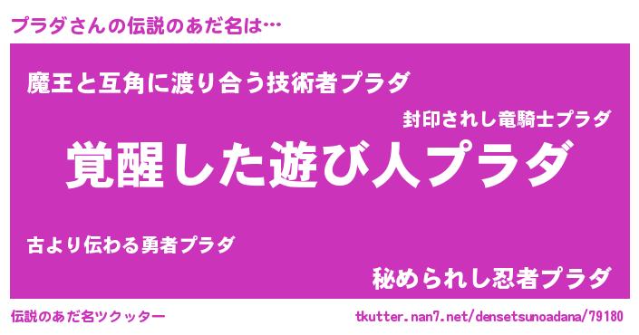 | ヒーロー風カッコイイあだ名 | 『天弓騎士プラ』『愛の使者プラダ』 |