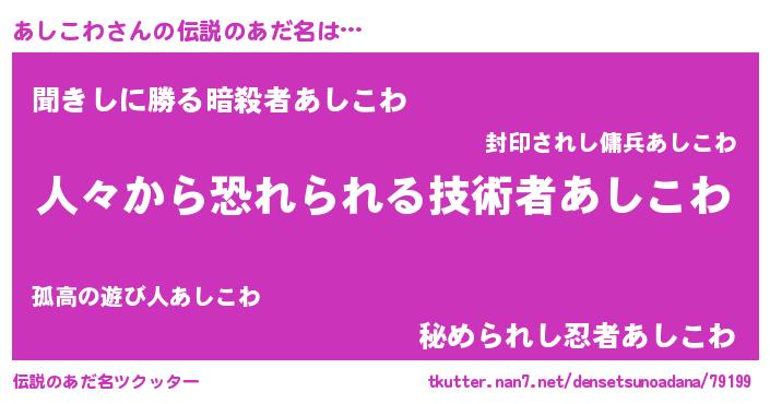 | 意味不明あだ名 | 『自称あしこわ』『永久保存あしこわ』 |