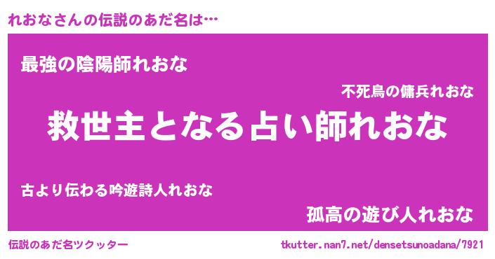 | ヒーロー風カッコイイあだ名 | 『最強戦士レオナ』『天空の使者れおな』 |