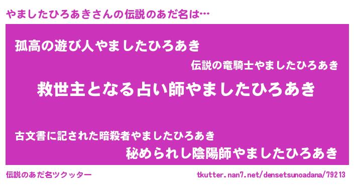 | 男性向けラノベタイトル風あだ名 | 『この素晴らしい世界にやましたひろあきを!』 |