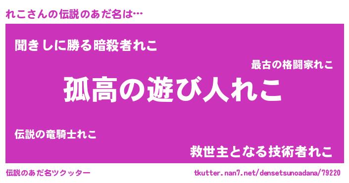 | 男性向けラノベタイトル風あだ名 | 『魔法科高校のれこ』『魔弾の王とれこ』 |