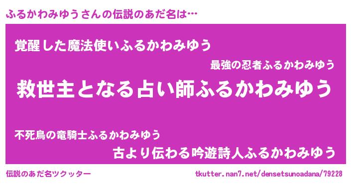 | 男性向けラノベタイトル風あだ名 | 『ノーゲーム・ノーフルカワミユウ』 |
