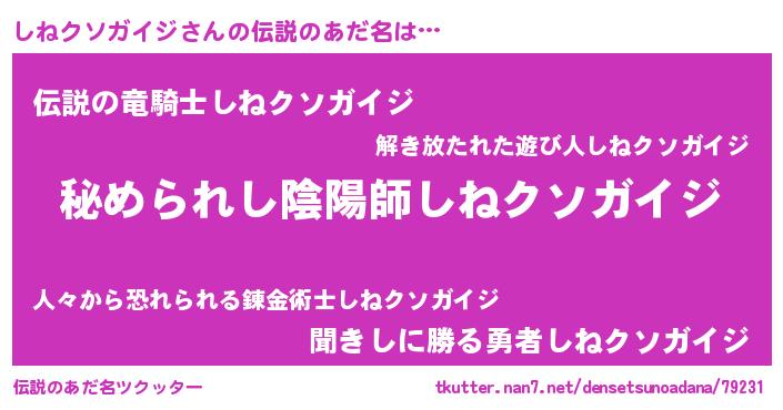 | 意味不明あだ名 | 『しねクソガイジフォーエバー』 |