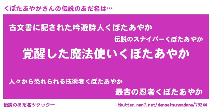 | 意味不明あだ名 | 『自称くぼたあやか』 |