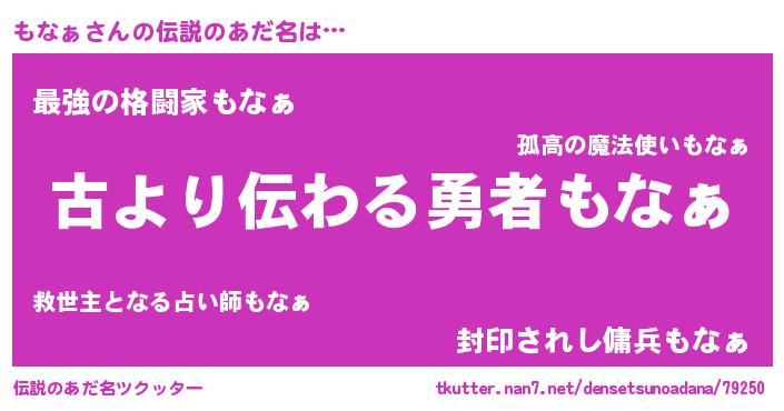 | ヒーロー風カッコイイあだ名 | 『ネオモナァ』『ウルトラもなぁマン』 |