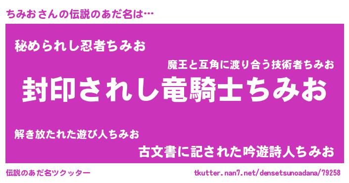 | ヒーロー風カッコイイあだ名 | 『スーパーチミオ』『ウルトラちみおマン』 |