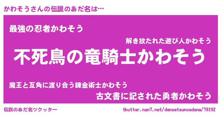 | 男性向けラノベタイトル風あだ名 | 『かわそうの憂鬱』 |