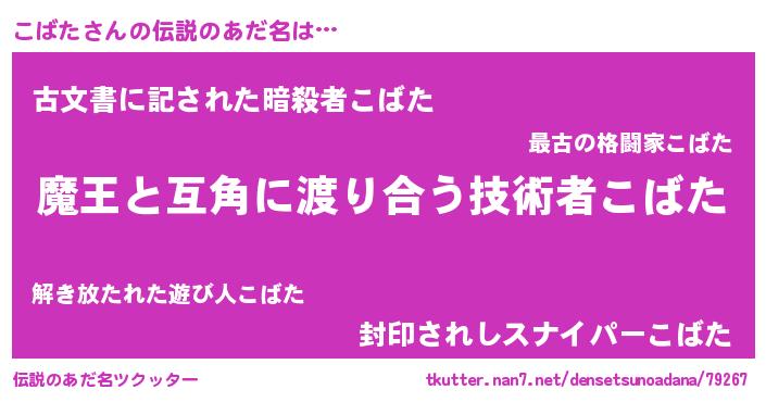 | 男性向けラノベタイトル風あだ名 | 『こばたに滅ぼされるだけの簡単なお仕事です』 |