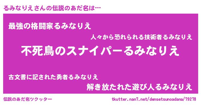 | 胡散臭い通販商品みたいなあだ名 | 『モテモテ間違いなし霊験あらたかなお札…その名も「るみなりえ」』 |