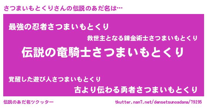 | 男性向けラノベタイトル風あだ名 | 『サツマイモトクリスレイヤー』 |