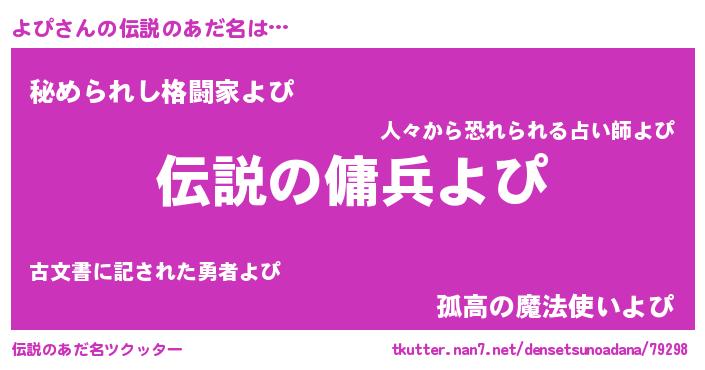| ヒーロー風カッコイイあだ名 | 『スーパーヨピ』『ウルトラよぴマン』 |