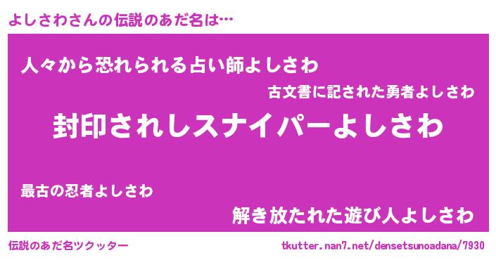 | 男性向けラノベタイトル風あだ名 | 『ヨシサワアートオンライン』 |