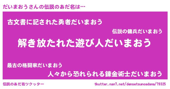 | 意味不明あだ名 | 『とにかく怪しいだいまおう』 |