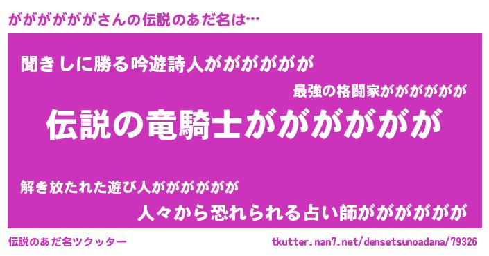 | 胡散臭い通販商品みたいなあだ名 | 『必ず成功するブレスレット…その名も「がががががが」』 |