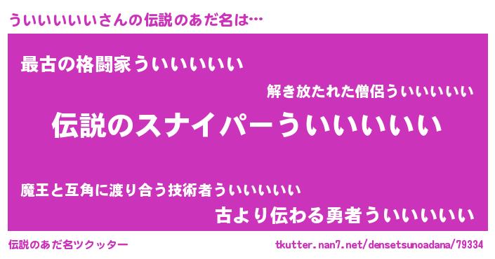 | ヒーロー風カッコイイあだ名 | 『仮面ウイダー』『スーパーウイイイイイ』 |