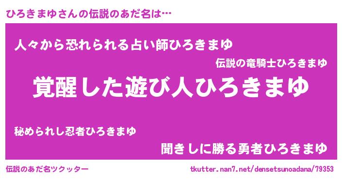 | 意味不明あだ名 | 『住所不定無職ひろきまゆ(81歳)』 |