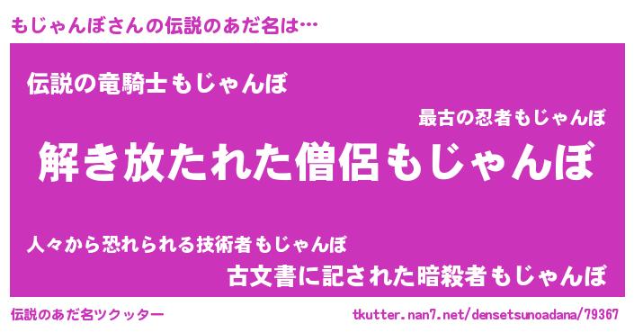 | 男性向けラノベタイトル風あだ名 | 『もじゃんぼの嫁は女の子じゃないと思った?』 |