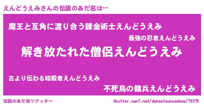 | 意味不明あだ名 | 『住所不定無職えんどうえみ(39歳)』 |