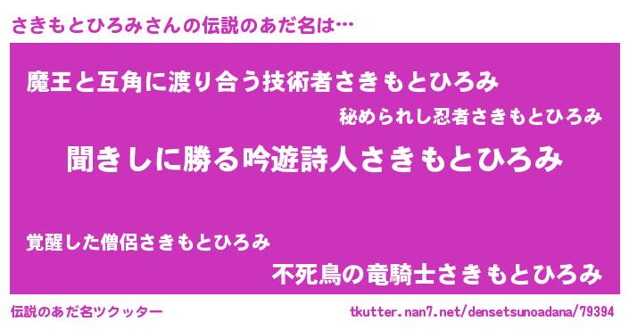 | 意味不明あだ名 | 『永久保存さきもとひろみ』 |