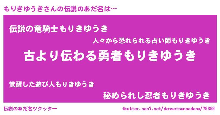 | 男性向けラノベタイトル風あだ名 | 『もりきゆうきに滅ぼされるだけの簡単なお仕事です』 |