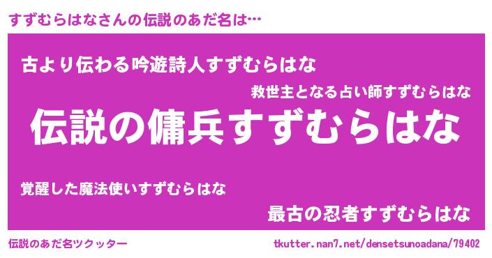 | ヘコむあだ名 | 『すずにゅー』『すずむらはな(笑)』 |