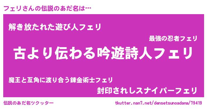 | ヘコむあだ名 | 『フェリ(小並感)』『フェぷりん』 |