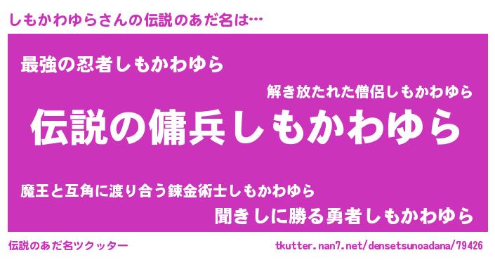 | ヒーロー風カッコイイあだ名 | 『仮面シモダー』『究極戦士シモカワユラ』 |