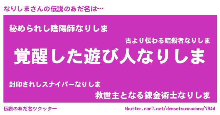 | ヒーロー風カッコイイあだ名 | 『仮面ナリダー』『幻影騎士ナリ』 |