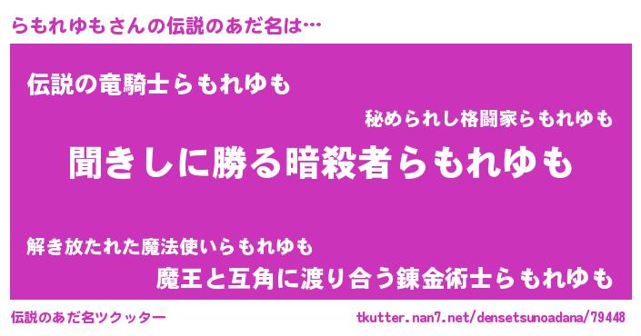| 意味不明あだ名 | 『永久保存らもれゆも』『自称らもれゆも』 |