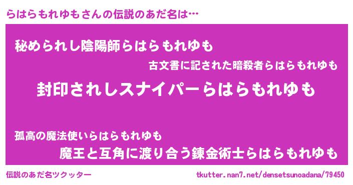 | 意味不明あだ名 | 『自称らはらもれゆも』 |