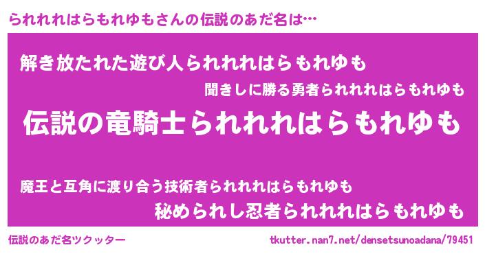 | ヒーロー風カッコイイあだ名 | 『超時空戦士ラレレレハラモレユモ』 |