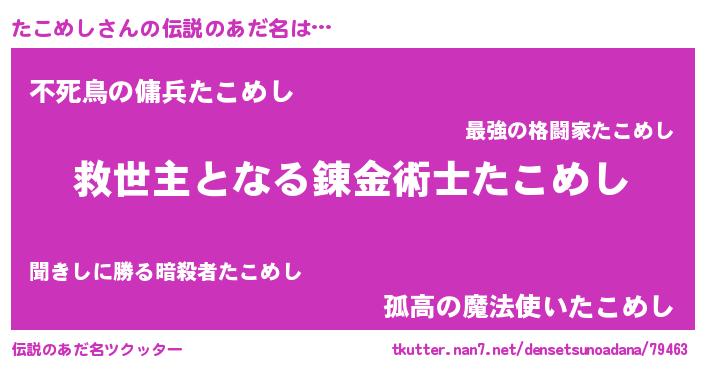 | ヒーロー風カッコイイあだ名 | 『天空の使者たこめし』『銀牙騎士タコ』 |