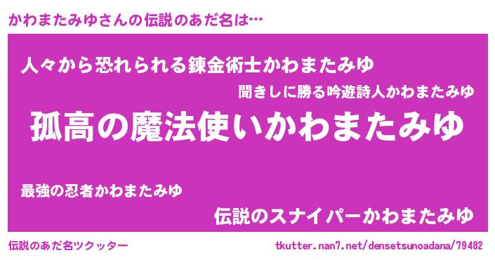 | 意味不明あだ名 | 『自称かわまたみゆ』 |