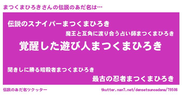 | 肩書あだ名 | 『まつくまひろき上級大将』 |