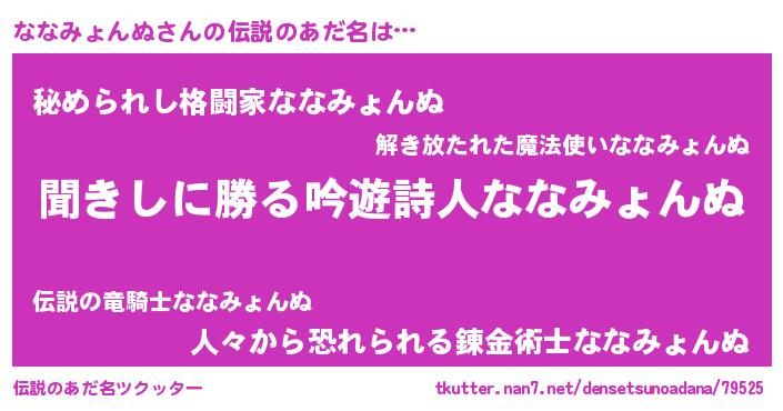 | 男性向けラノベタイトル風あだ名 | 『ななみょんぬという概念が存在しない退屈な世界 』 |