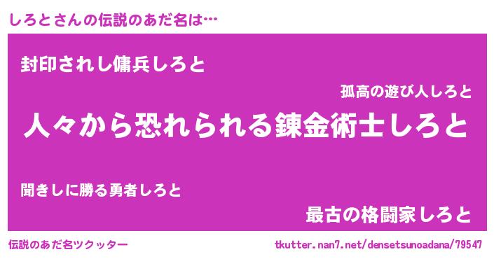 | 意味不明あだ名 | 『住所不定無職しろと(91歳)』『自称しろと』 |