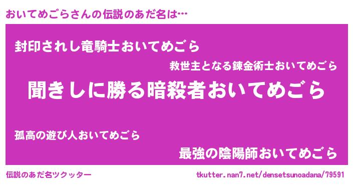 | 意味不明あだ名 | 『永久保存おいてめごら』 |