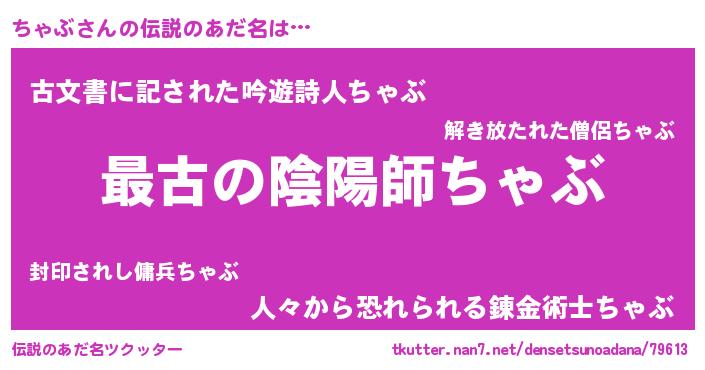 | 男性向けラノベタイトル風あだ名 | 『冴えないちゃぶの育てかた』 |