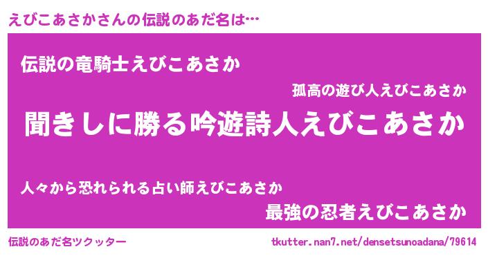 | 意味不明あだ名 | 『永久保存えびこあさか』 |
