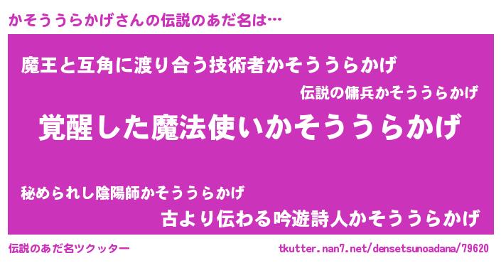 | 男性向けラノベタイトル風あだ名 | 『この素晴らしい世界にかそううらかげを!』 |