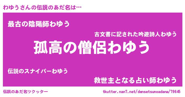 | ヒーロー風カッコイイあだ名 | 『黄金騎士ワユ』『ウルトラわゆうマン』 |